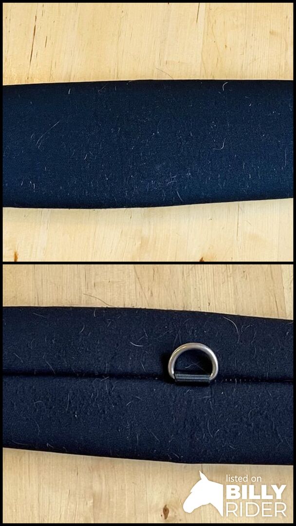 Das sehr weiche und dicke Material passt sich optimal an die Bewegungen des Pferdes an und schützt so vor Scheuer- und Druckstellen. Mit Edelstahl- Rollschnallen und einem Ring für Hilfszügel in der Mitte. Ohne Elastikeinsatz.
