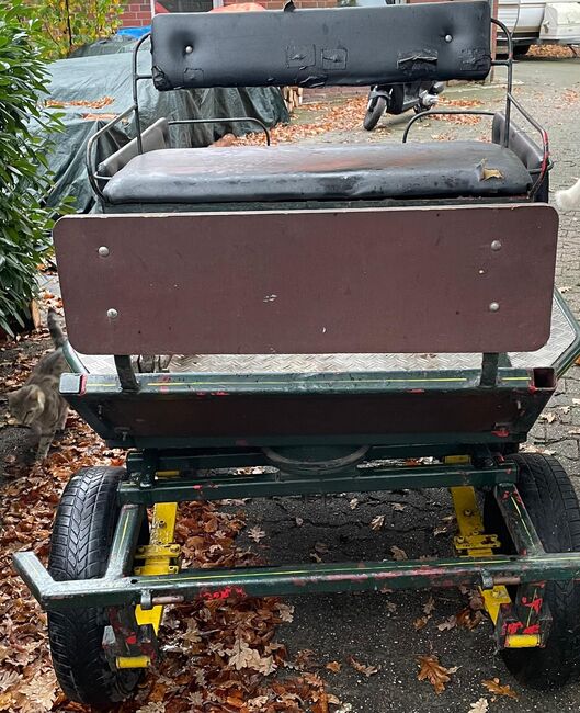 Kutsche zu verkaufen. Mit Fußbremse.Eine Schere für Großpferde und eine für Ponys dabei.Sitze müssten neu bezogen werden.Bei Interesse gerne melden.