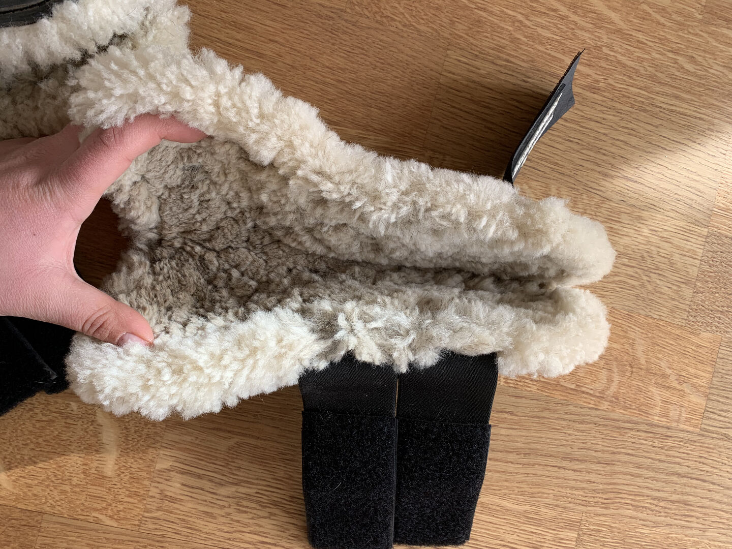 Biete gut erhaltene Gamaschen aus Echt-Lammfell für die Vorderbeine.