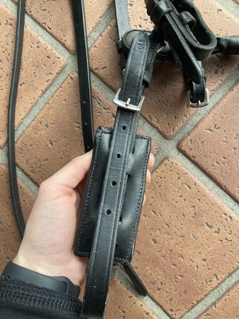 Zweimal benutzter Kappzaum aus Leder mit Metallringen zum Longieren. Es besteht die Option, ein Gebiss einzuschnallen, ist aber auch ohne verwendbar. Hat meinem Pferd leider nicht gepasst und wird deshalb verkauft. Bei sonstigen Fragen gerne melden :)