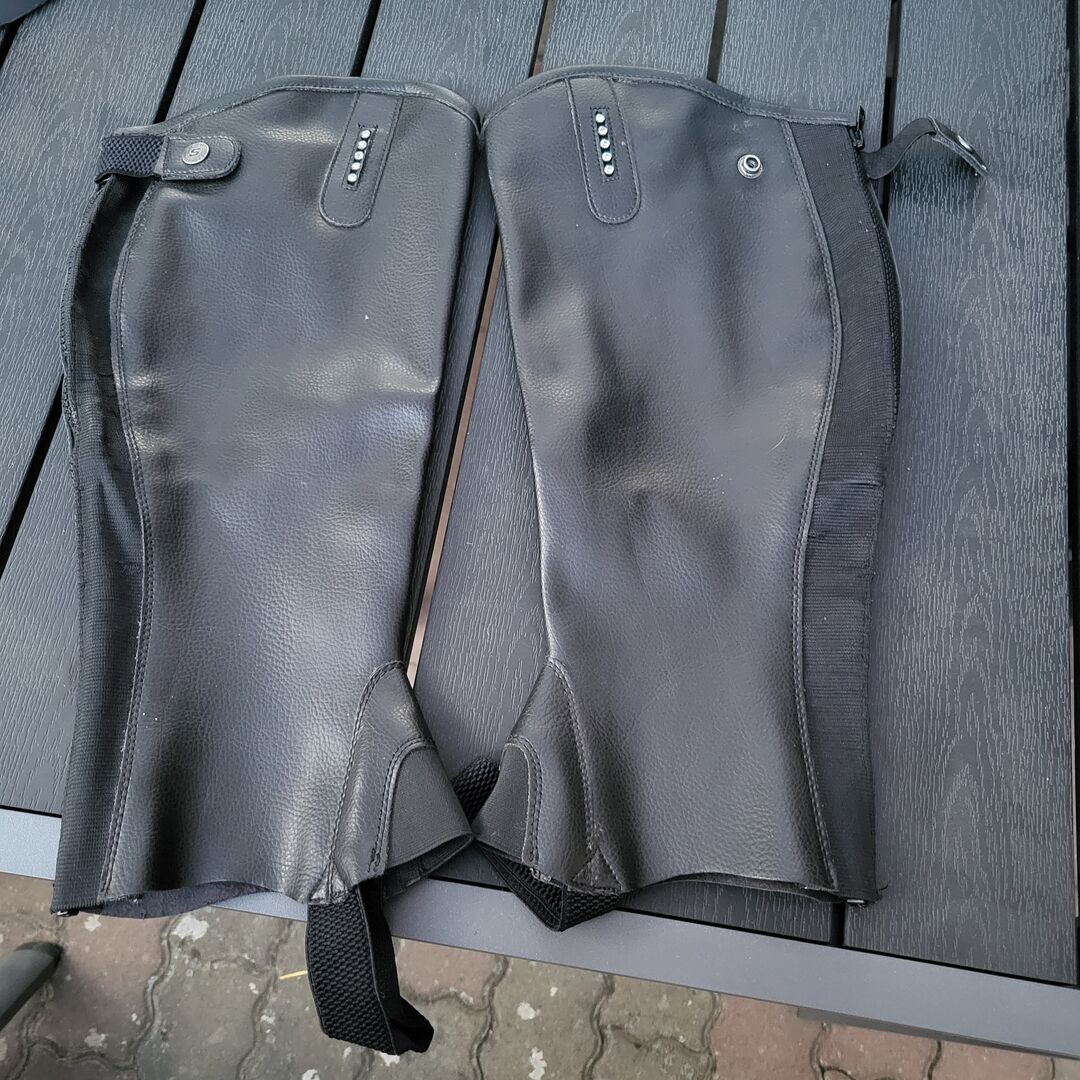 Ich verkaufe schwarze sehr selten getragene Lederimitat Chaps der Marke Steeds Crystal in Größe XXL. Sie haben schicke Glitzersteinchen eingearbeitet.