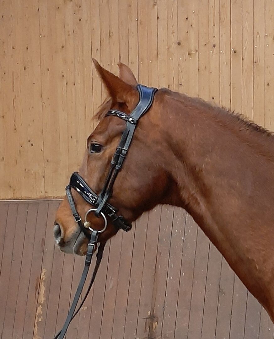 Zum Verkauf steht eine schonend eingerittene und ausgebildete sechsjährige Dunkelfuchsstute. Cinderella arbeitet stets mit sei es in der Dressur oder im Springen. Durch ihre Großväter Cero I und Don Cavallo bringt sie sowohl bestes holsteiner Springblut, als auch hannoveranisches Dressurblut mit. Ihre Intelligenz zeigt sich durch ihr Geschick am Sprung und ihre schnelle Auffassungsgabe in Dressurlektionen. Sie befindet sich auf gutem A-Niveau und hat bereits spielerisch Kurzkehrt, Traver, Schulterherein und Rückwärtsrichten gelernt. Sie stellt sich stets offen und lerneifrig neuen Aufgaben und Anforderungen. Auch im Gelände ist sie artig sowohl in Gesellschaft als auch alleine. In der Haltung ist sie unkompliziert. Den Sommer hat Cinderella auf der Koppel verbracht, was ihre körperlichen und geistigen Reife gefördert hat. Sie ist ca. 165cm groß und barhufer. Unarten wie Beißen oder Schlagen kennt sie nicht. Standort 19205 Gadebusch