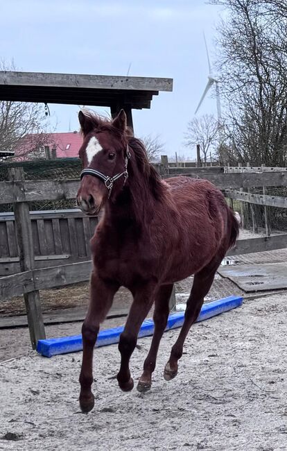 Shine Good ist eine bildhübsche American Quarter Horse Stute, geboren am 23.04.2025, in der Farbe Sorrel rabicano. Sie besitzt Papiere der American Quarter Horse Association (AQHA) und wird voraussichtlich ein Endmaß von ca. 152 cm erreichen. Die junge Stute überzeugt durch ihr korrektes Gebäude, ihre sehr gute Entwicklung und ihre ausgewogene Bemuskelung. Lyra ist gesund und wächst unter besten Bedingungen mit viel Liebe auf. Tierarzt und Hufschmied kennt sie bereits, sie ist regelmäßig geimpft und bestens im Umgang. Lyra lebt in Offenstallhaltung in einer gemischten Herde und wurde auf natürliche Weise abgesetzt. Sie ist halfterführig, kennt angebundenes Stehen beim Putzen und fährt brav im Anhänger mit ihrer Mutter. Das Fohlen-1×1 beherrscht sie zuverlässig. Charakterlich besticht Lyra durch ihre Menschenbezogenheit, ihre Neugier und Gelassenheit. Sie ist brav, altersgerecht verspielt, besitzt ein tolles Temperament und zeigt sich sehr gelehrig und aufgeschlossen. Ihr liebevolles Wesen macht sie zu einem echten Nachwuchspferd mit Potenzial. Durch ihre Allround- und Reining-Abstammung eignet sie sich sowohl als zukünftiges Showpferd als auch als zuverlässiger Freizeitpartner. Mit ihrem Charakter aus Gold ist Shine Good ein echtes Versprechen für die Zukunft. Die Abgabe erfolgt direkt vom Züchter und ausschließlich in allerbeste Hände.