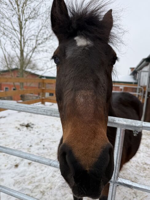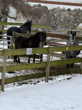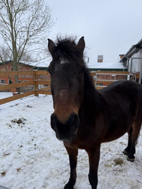 Hier kommt Monika, eine kuschelbedürftige Ponydame. Seit Sommer bei uns, kennt Sattel und Reitergewicht, braucht Ausbildung durch eine liebevolle führende Person.ist lange nicht geritten worden. Sie ist gesund. Ich gebe sie ab, da ich im Winter wenig Möglichkeiten habe, sie zu bewegen. Nicht schreckhaft. Kennt Box und Offenstall. Pass und gechipt. Eher dominant gegenüber einer anderen Stute, mit der sie zusammen steht. Kein Kinderpony, kein Pony zum sofort losreiten. Aber mit viel Potential. Ich gebe sie als roh ab.es gibt ein Reitvideo aus dem Sommer. Platz vor Preis.