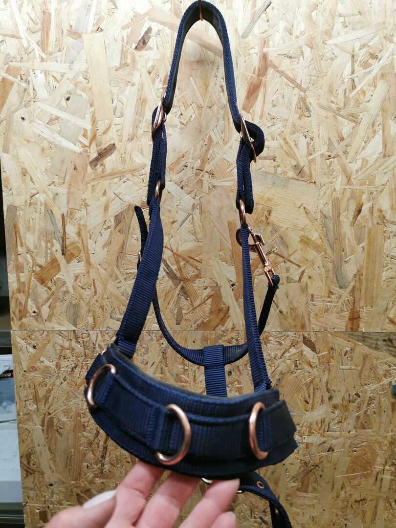 Ein nur 2x genutztes Longierhalfter von Showmaster in Marineblau-Roségold.