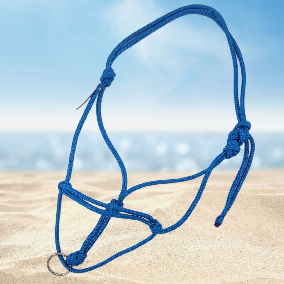 Longierknotenhalfter, Knotenhalfter mit Ring, verdreht sich nicht, sitzt auch in Bewegung, rutscht nicht über der Nase. Ideal für Bodenarbeit, zirzensische Lektionen, Spazieren, horsemanship, longieren. Halfter 6 mm dick