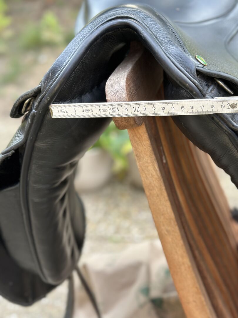Dressursattel. Der Sattel ist für Pferde mit hohem Widerist und leicht ansteigendem Rücken geeignet. Durch die „spanischen“ Bananenkissen fällt der Sattel, trotz seiner 18 Zoll klein aus (eher 17,5) und hat eine optimale Druckverteilung durch die auslaufenden Kissen. Der Sattel ist in einem guten Zustand, leichte Gebrauchsspuren am Vorderzwiesel. Die Gurtstrupfen benötigen etwas fett, ansonsten durch die V Begurtung ebenfalls sehr gute Druckverteilung. Sitzfläche in einem sehr guten Zustand und sehr bequem, sehr weich im Gegensatz zu meinem Kentaur Zweitsattel.