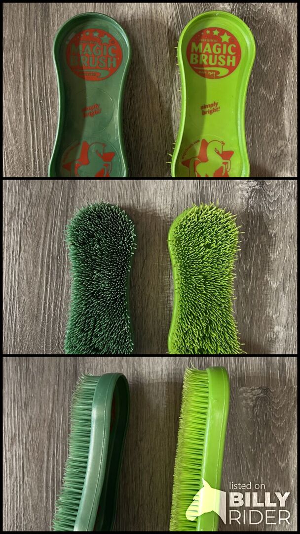 Verkaufe hier 2 Neuwertige Magic Brush in einem Hellen und dunklerem Grün. Beide Bürsten wurden nicht am Pferd genutzt. die Dunkle ist komplett neu und die hellgrüne wurde 1x zum ausbürsten einer Schabracke genutzt und danach gereinigt, daher ist diese wie neu. Beide Bürsten liegen schon etwas im trockenen Keller, daher können die äußeren Borsten etwas zur Seite stehen, wie auf den Fotos zu sehen ist.