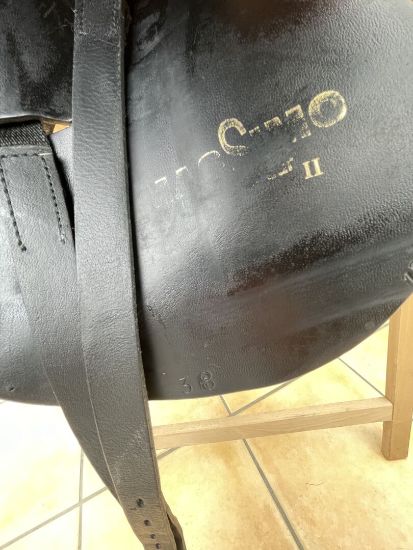 Dressursattel II mit einer Kammerweite von 38 aktuell auf 39 geweitet. Der Sattel kann problemlos vom Sattler zwei Kammerweiten nach unten oder nach oben kalt geändert werden (KW 36-40). Optimal für Haflinger, Friesen, Tinker mit breiter Schulter/Rücken, kurzer Sattellage (Auflagefläche 39-40 cm) und wenig Schwung. Außerdem verfügt er über einen breiten Wirbelkanal. Dieser ist an der schmalsten Stelle eine Handbreite -7 cm.