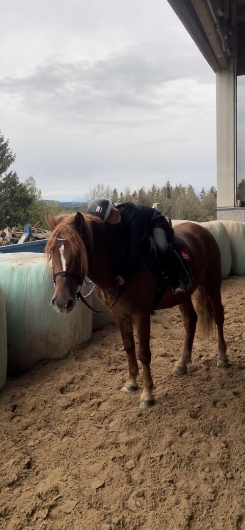 Merlin, 8 j, 1.57m grosser stabiler Wallach mit tollem Springvermögen. Liegt leicht in der Hand. Seine angenehmen Gangarten machen ihn zu einem super Allrounder. Auch beim ausreiten im Gelände sehr artig. War auch beim allerersten Auswärtstraining sehr anständig und hat problemlos Sprünge mit Planken, Wassergraben etc bewältigt. Absolviert den Reitschulunterricht mit Bravour. Brav beim Schmied und beim Verladen. Kein reines Kinderpferd.