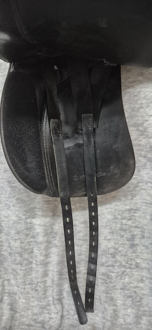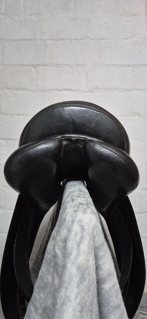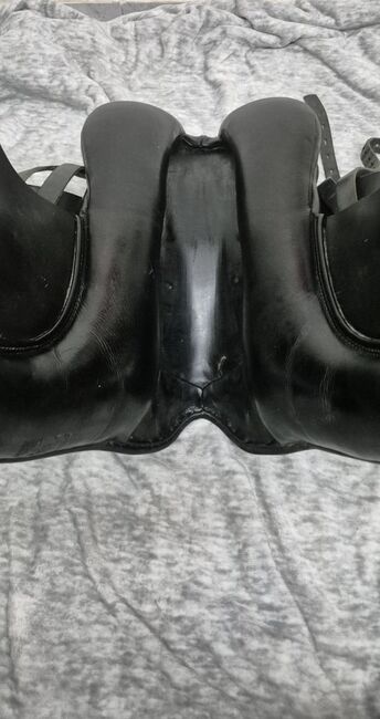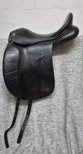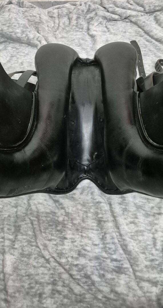 Dressursattel, mit 17,5 Zoll und mittlerer Kammerweite. Der Sattel zeichnet sich durch einen tollen Sitzkomfort aus und verfügt über eine gute Anpassungsfähigkeit, ist dabei auch für Pferde mit breiteren Schultern und Rücken geeignet. Bei dem Sattel kann mit Klettpauschen gearbeitet werden. Der Dressursattel wurde in den letzten Jahren regelmäßig von einer Sattlerei überprüft.