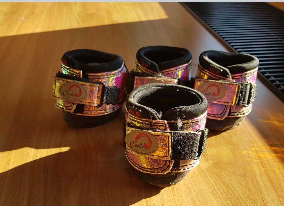Verkaufe gebrauchte Hufschuhe von Cavallo in Größe M1 die Hufschuhe lassen sich einfach an und ausziehen und sind ein echter hingucken. Pro paar 85 € Alle 4 für 160 € Plus Versand.