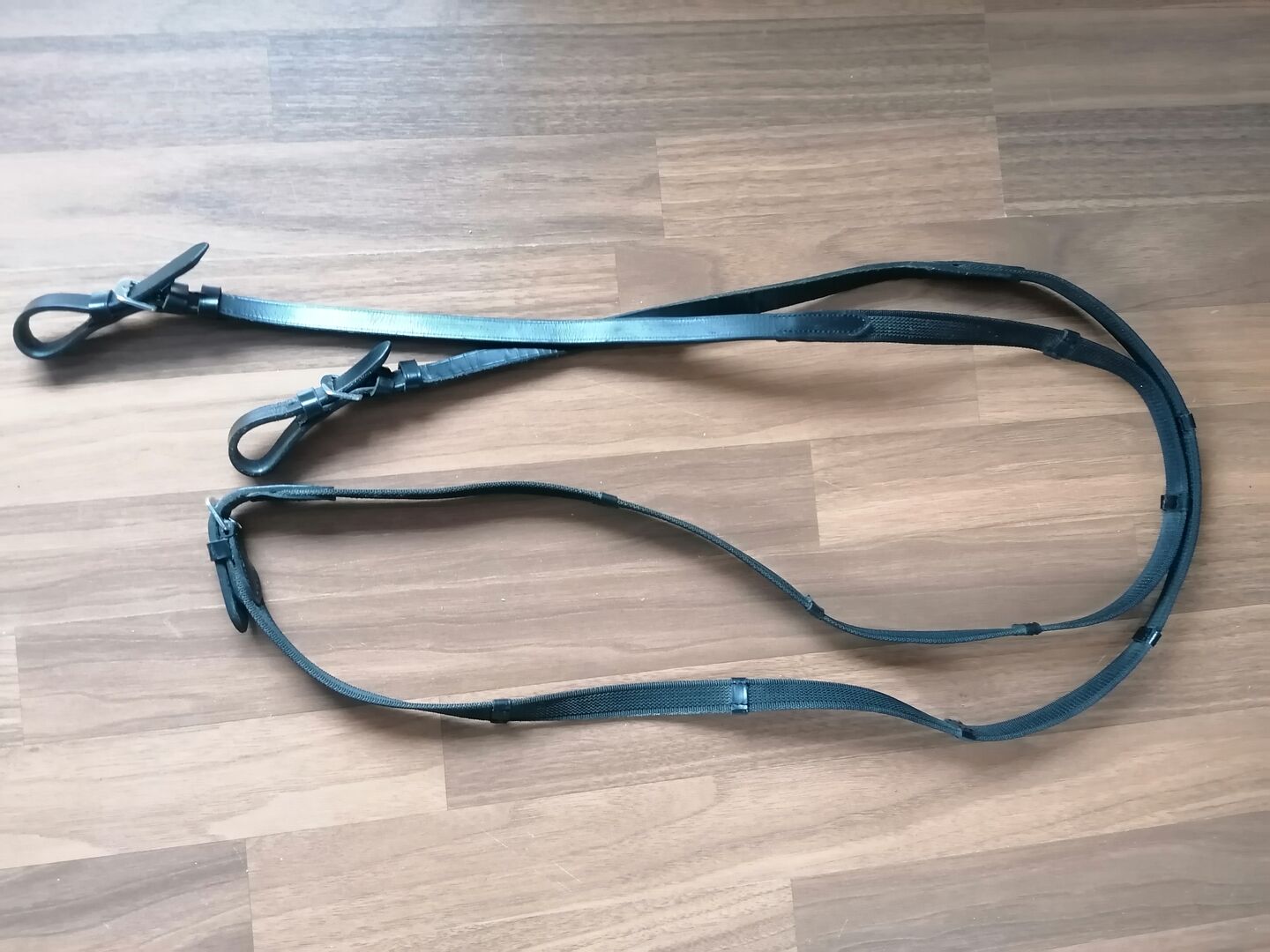 Verkaufe hier schwarze gebrauchte Mix & Match Non-Slip Zügel der Marke CLARIDGE HOUSE (Krämer) in einen Top Zustand. Größe: Cob/Kleinpferd