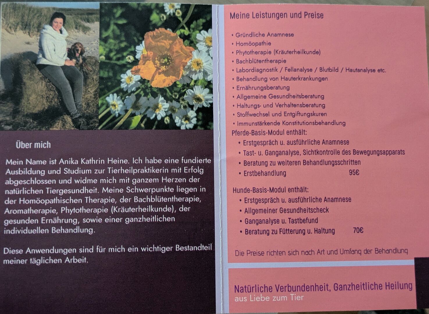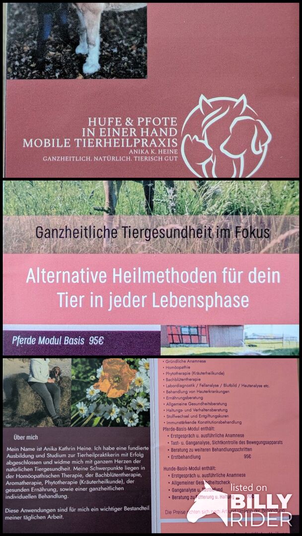 Nach Abschluss eines fundierten Studiums und regelmäßigen Fortbildungen, biete ich für dein Pferd, Hund und Katze, die ganzheitliche Naturheilkunde an.