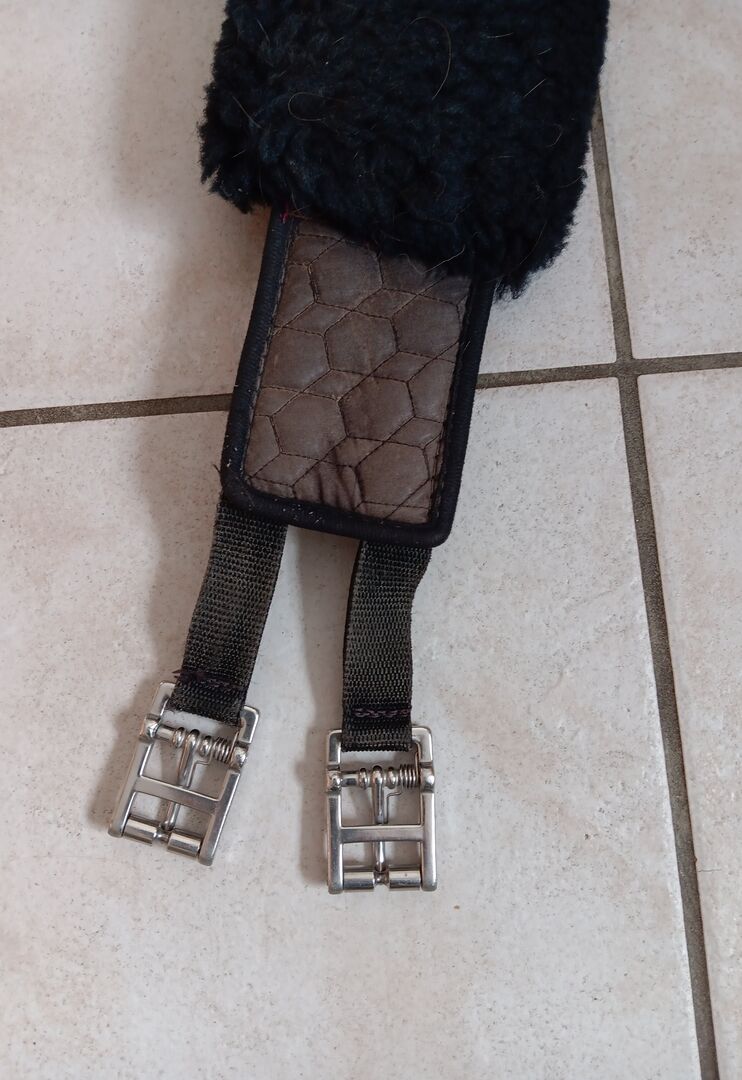 Verkaufe den Mondgurt von Mattes mit echtem Lammfell, abnehmbar. Mit Ring für Martingal bzw. Vorderzeug. Größe 48/17 Länge 130 cm. Sehr gut erhalten. Genutzt, aber keinerlei Defekte, nur ein paar Pferdehaare dran.