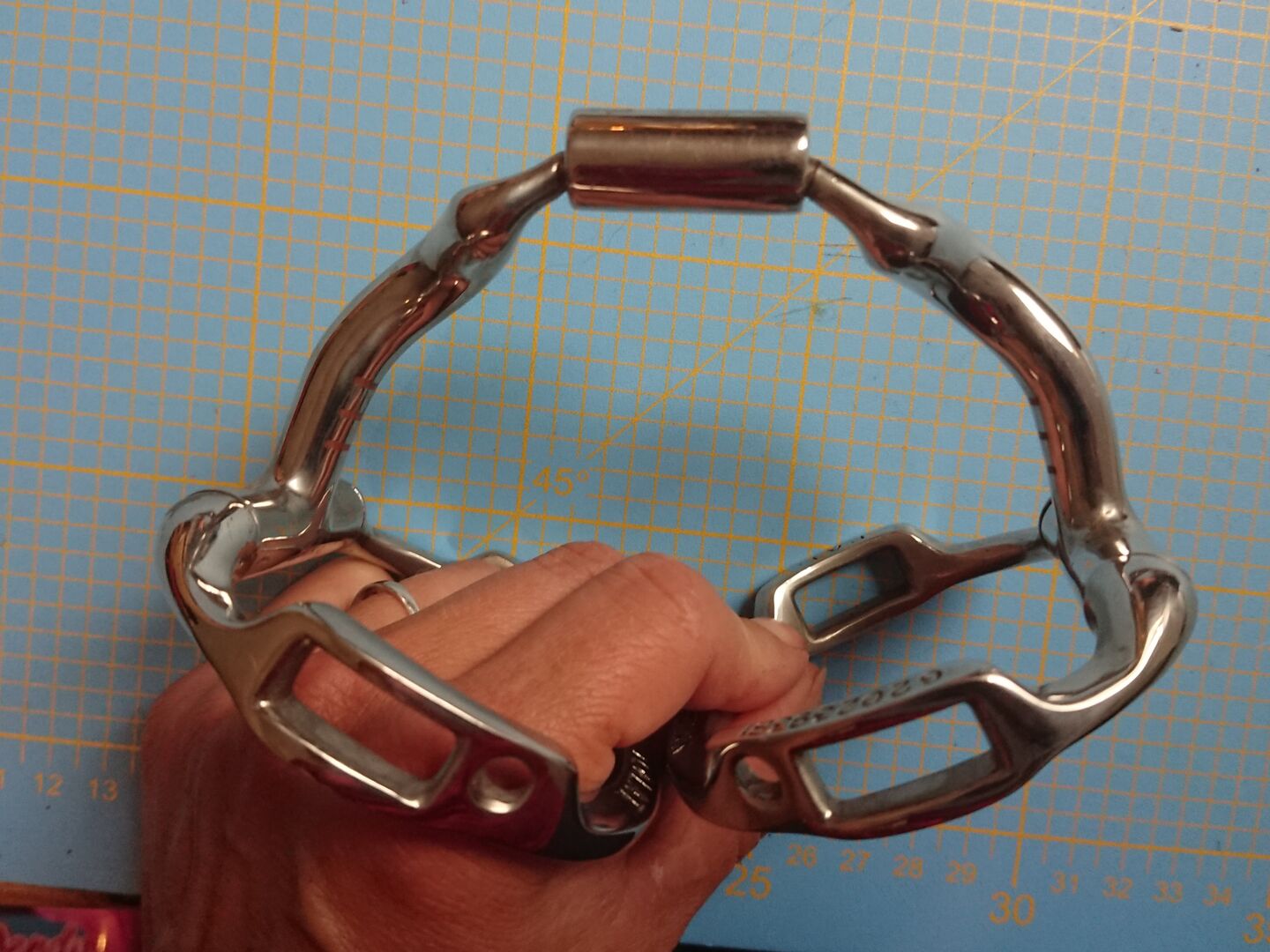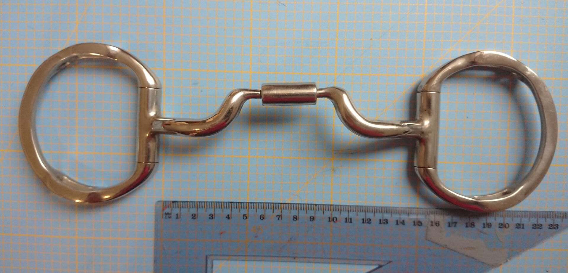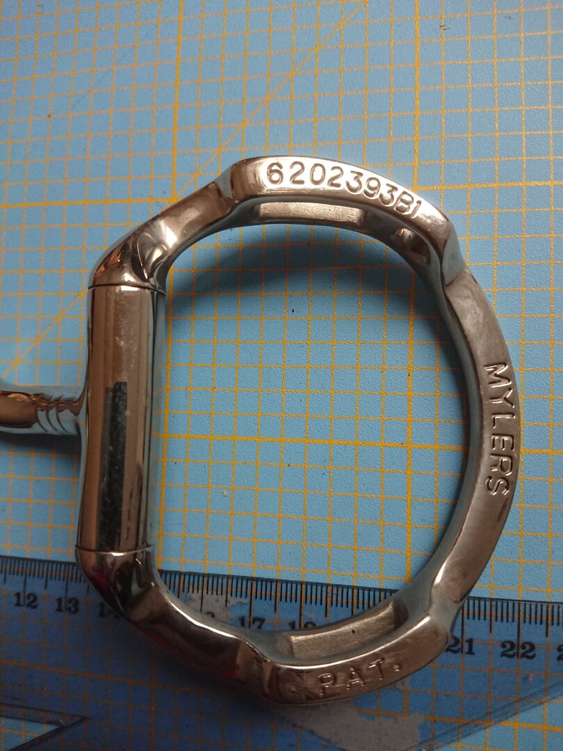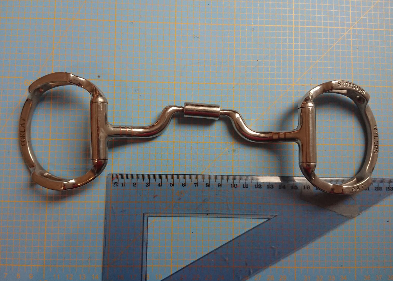Mylers Olivenkopfgebiss Snaffle Bit mit mittlerer Zungenfreiheit, extra Zügeldurchlässen/Ösen und Durchlass für Kinnkettenhaken (nicht dabei) . So ist das Gebiss mit oder ohne leichte Hebelwirkung nutzbar. Stange ist mit beweglichen Mittelstück, welches durch Begrenzung einen Nussknackereffekt verhindert. Weite ca. 14, 5 cm, dünn, Kupfereinlagen. Sehr guter Zustand, mein Pferd möchte es nicht so, daher kaum gebraucht..