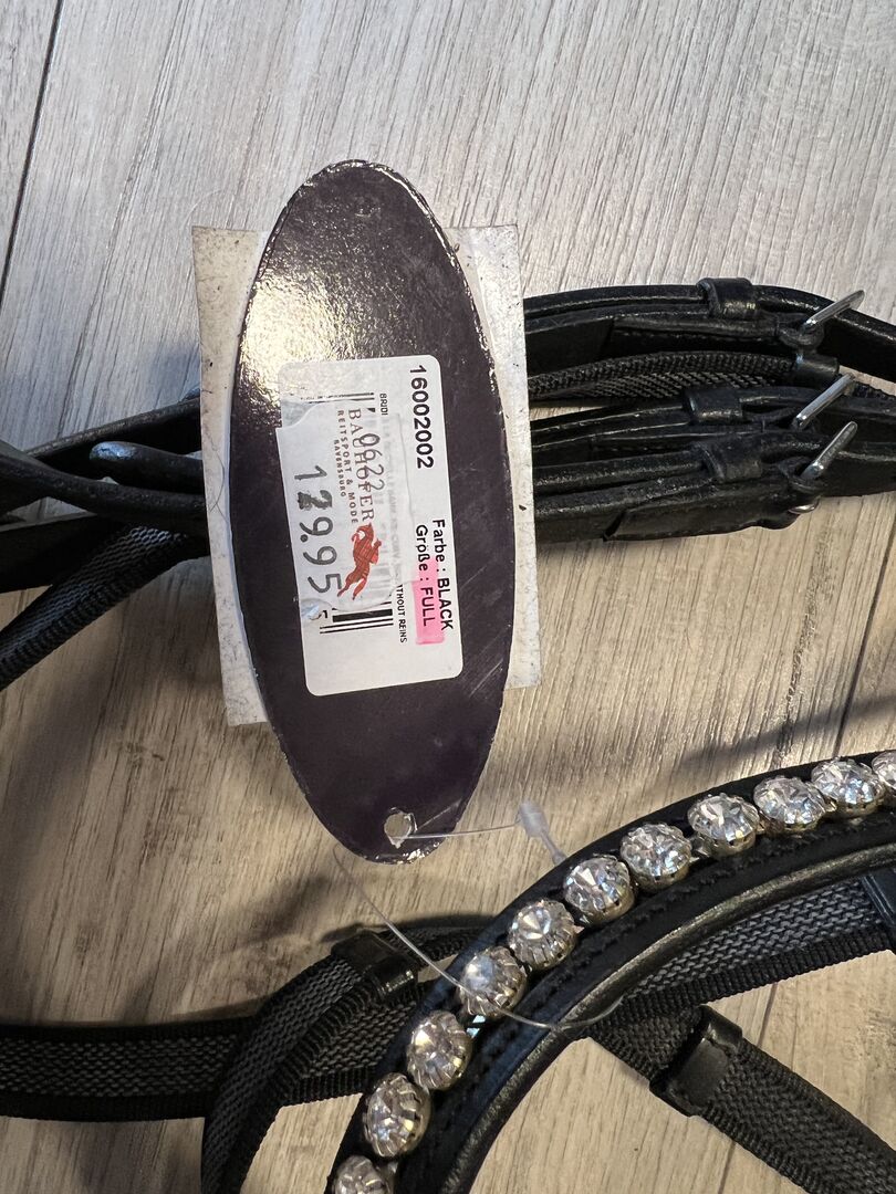 Neue Dressurtrense von Euroriding mit Strassstrinband und Zügel. Größe Full, Farbe schwarz