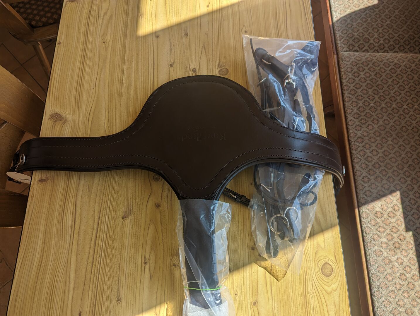 Biete einen nagelneuen Stollengurt von Kavalkade (Secure X) in dunkelbraun in 135 cm an. Bei dem Stollengurt ist das Vorderzeug integriert, welches im Kaufpreis natürlich inklusive ist.
