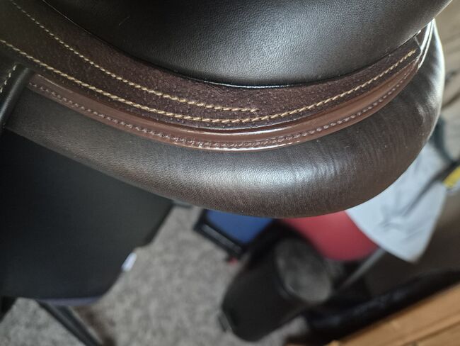 Springsattel von Ikonic. Es handelt sich um das Modell Cross Pro Evolution Monoblatt. Die Größe des Sattels ist 17'' und die momentan verbaute Kammerweite MW. Diese kann aber selbstständig bei den Ikonic Sätteln geändert werden. Der Sattel wurde im März diesen Jahres (2025) hergestellt, somit ist er wirklich wie neu.