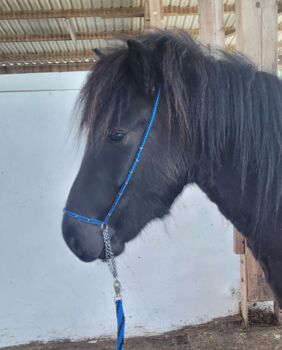 2-fach verstellbar über Dornschnallen, Nase und Genick weich unterlegt, chromfarbende Beschläge, wunderschöne Pferdchen-Motiv Applikationen