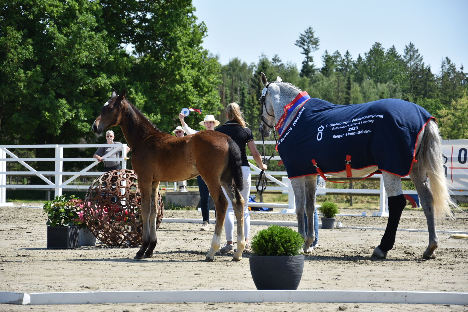 Auf dem Fohlenchampionat überzeugte er das Komitee und erhielt die Elite Auszeichnung und wurde Siegerfohlen. Forte per me / Sandro Hit, ein Stammbaum mit Rang und Namen. Er wächst bei uns liebevoll auf. Er ist geimpft, er kennt den Schmied ( dieser hat von Anfang an ein Auge auf die Lütten) auch wird er regelmäßig entwurmt. Für die ausreichende Mineralversorgung für ein gesundes Wachstum, erhalten alle Mega Base, Biofutter und unser eigenes Bioheu. Schonend wurde er abgesetzt ohne weinen, jaulen und meckern, hmm nein, der hat sich selbst abgesetzt. Er ging von Anfang an schon eigene Wege🙈 Tagsüber tollen die jungen gemeinsam draußen oder in der Halle rum, nachts hat jeder seine eigene große Box zum ausruhen. Dadurch machen sie das auf- abhalftern und führen aus dem FF. Falls wir nun Ihr Interesse geweckt haben und Sie möchten diesen tollen und wirklich lieben Rotzlöffel persönlich kennenlernen, freuen wir uns auf eine nette Anfrage. VG Fam Walter