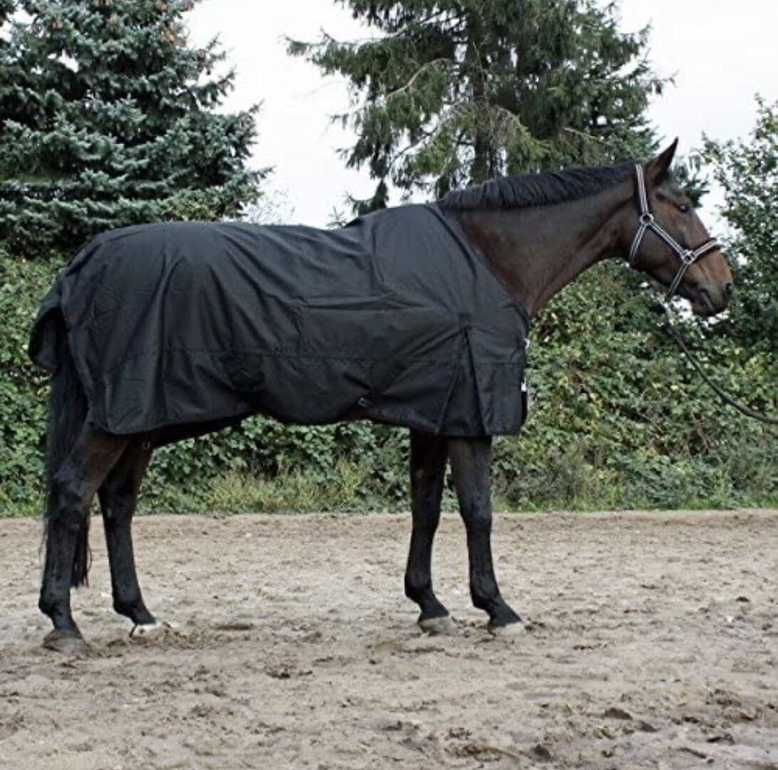 Neue hochwertige Regendecke von jw-reitsport in Größe 125 ! Diese roboste und reißfeste Regendecke ist wasserdicht und atmungsaktiv. Die Decke ist ungefüttert mit einem 600 Denier Ripstop-Material an der Außenseite. Durch das Fleecefutter an der Innenseite hat die Decke eine Abschwitzfunktion. Die Decke ist mit einem tiefen Schnitt ausgestattet mit Gehfalte, Kreuz- und Hinterhandgurten sowie Widerristpolster und Schweiflatz. Durch die doppelte Frontverschnallung mit Quick-Snaps und Klett kann die Decke an der Brust des Pferdes bequem passgenau eingestellt werden. Decke lag nur einmal zur Probe am Pferd - Rückgabefrist ist verstrichen deshalb wird sie verkauft !