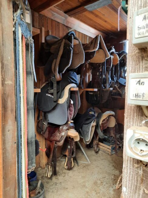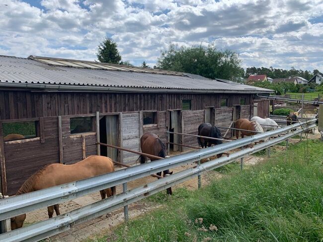 In unserem kleinen (10 Paddockboxen, Einstreu hochwertiges Holzmehl - lungenfreundlich - sehr saugfähig) familiären Stall sind noch Boxen in unterschiedlichen Größen frei. Individuelle Versorgung bei Teil- oder Voll-Pension möglich. Koppel- und Decken-Service inclusive. Vergabe von Brei (Rentner, …) möglich. Entsprechend der Witterung täglich Auslauf auf Koppeln/Platz in zueinander passenden Gruppen. Einzelkoppel möglich. Für Stoffwechselerkrankte, Rehepferde, Shettys, … kann Bewegungsmöglichkeiten geschaffen werden. Zur Verfügung stehen: Bewegungsplatz (40x23m, Brechsand, ganzjährig benutzbar), Roundpen (ø16m), Putzplätze im überdachten Innenhof und Außenbereich (mit Duschmöglichkeit), Schrankraum, Sattelkammer, Futterkammer, Aufenthaltsraum, Grillplatz, Hundezwinger. Preis richtet sich nach Pferde-/Boxen-Größe und Zubuchung.