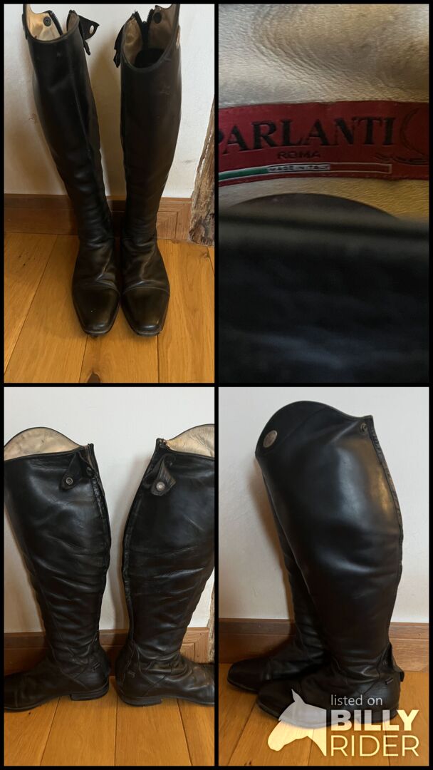 Größe 7 schwarze Lederstiefel Smart Stiefel in gutem Zustand, leichte Abnutzung / Gebrauch Parlanti Höchster Punkt vom Boden ist 53cm Die breiteste Stelle der Wade ist 44cm Dole in gutem Zustand Bequeme Stiefel, zu groß für mich (ich habe sie nie getragen!)