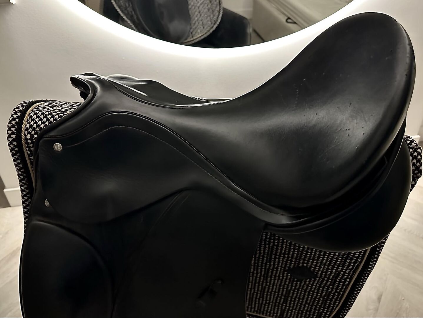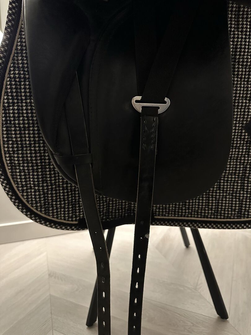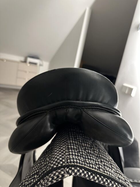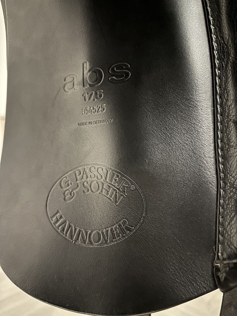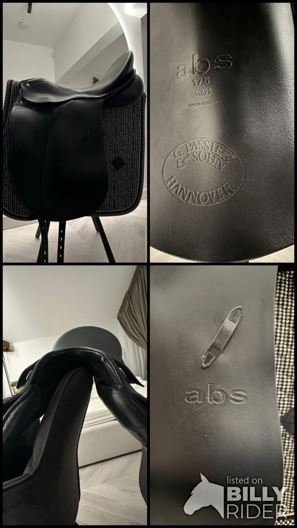 Hochwertiger Passier Abs Dressursattel zu verkaufen, hergestellt in Deutschland (Hannover). Dieses Modell wurde speziell für Pferde entwickelt, bei denen die Sattelanpassung schwierig ist, insbesondere bei Pferden mit zurückliegender Schulter. Hauptmerkmale: - Anti-Rutsch-Design: Ausgestattet mit einem speziellen Punkt Billet Gurt und "abs" Gurtsystem zu verhindern, dass der Sattel nach vorne auf die Schultern des Pferdes rutscht. - Pferdekomfort: Ausgestattet mit "Freedom Panels", um maximale Bewegungsfreiheit zu gewährleisten. - Verstellbarkeit: Das Kopfeisen ist in der Breite verstellbar, um es an verschiedene Pferde anzupassen. - Hochwertige Materialien: Hergestellt aus europäischem Kalbsleder und Selloil-Leder an den Sitz- und Knieeinsätzen. - Details: Tiefer Sitz, Synthetik-Sattelbaum und 17,5" Sitzgröße.