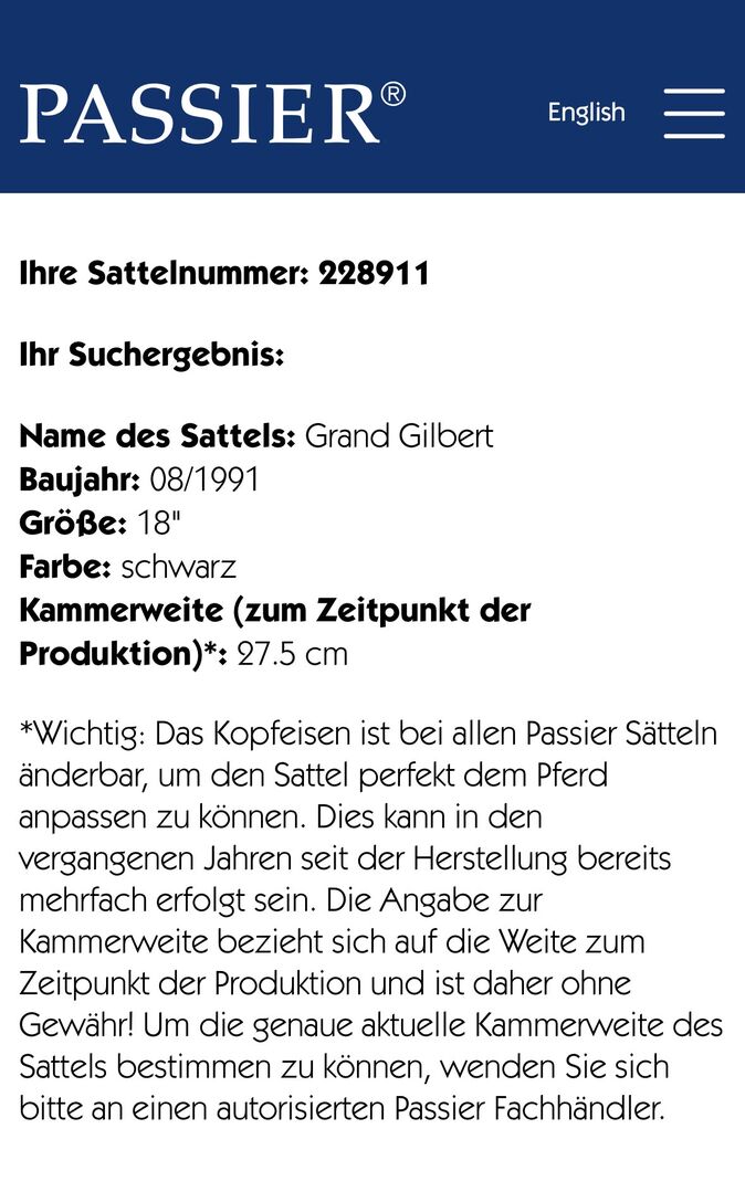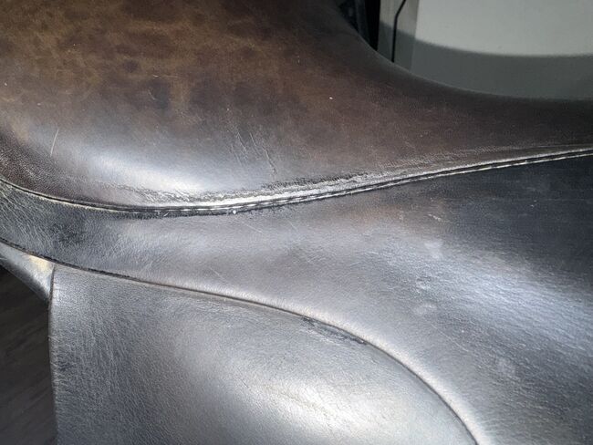 Der Sattel lagert warm und trocken im Haus und wurde gut gepflegt, da er nun längere Zeit nicht mehr genutzt wurde sollte evtl. die Polsterung überprüft werden. Die Gurtstrippen sind in einem einwandfreien Zustand, lediglich an den Seiten der Sitzfläche zeigen sich langsam erste „Beschädigungen“ welche dem Nutzen jedoch keinen Abbruch tun.