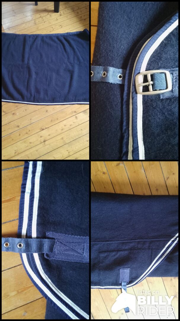 - Diese ist aus Wolle, unbeschädigt, alle Verschlüsse funktionstüchtig und wenig genutzt. Ich habe die Länge der Decke gemessen. Von der Kruppe bis zum Widerrist sind es 130 cm.