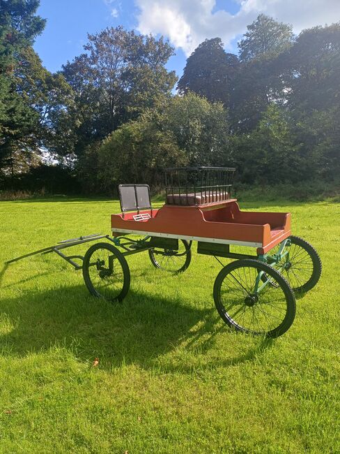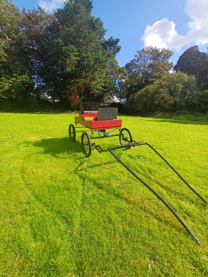 Pferdefalle zu verkaufen In ausgezeichnetem Zustand (wie neu) Vier neue Gummireifen und Schläuche (für komfortablen Straßeneinsatz) Sitz neu gepolstert in einem schönen braunen wasserdichten Leder Lampenhalterung aus Messing