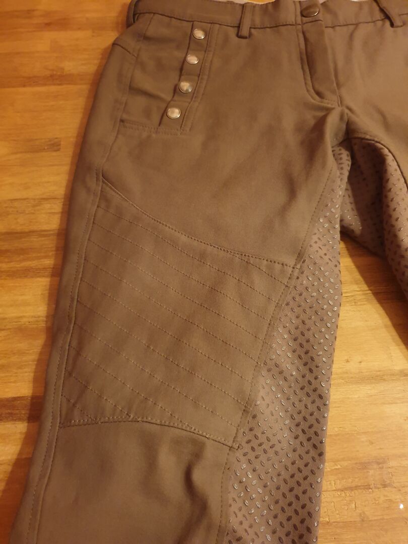 die Reithose wurde sehr wenig getragen. Das einzige Manko ist, das ich die Taschen an der Seite zunähen musste, da sie so komisch abstanden. Aber hinten gibt es ja noch Taschen Länge 92 cm Bund 38 cm