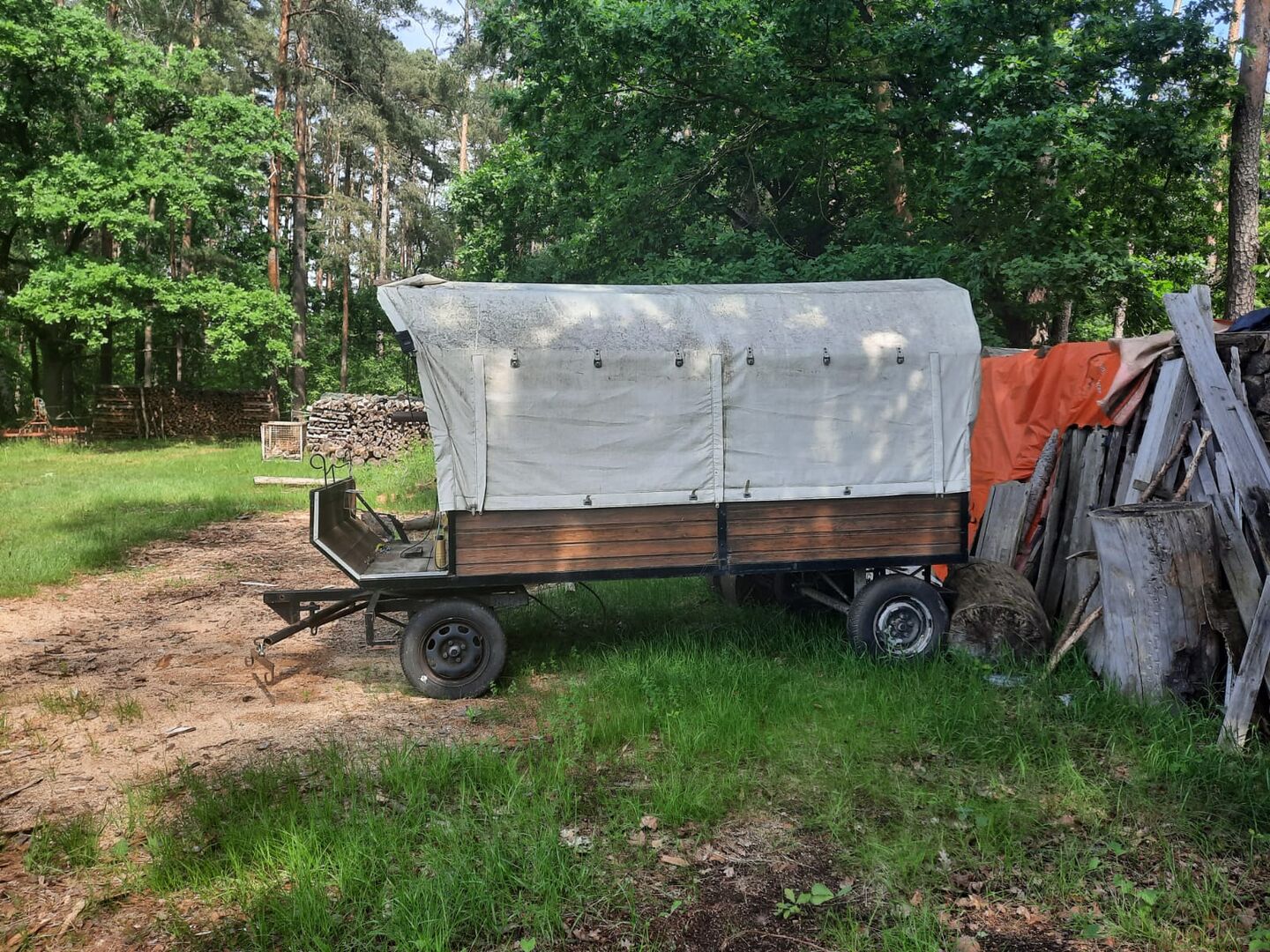 Gebrauchter Planwagen, fahrbereit, Fuss- und Feststellbremse, Luftbereift, Biertisch, Plane an den Seiten rollbar, zweispännig, ca. 10 Sitzplätze