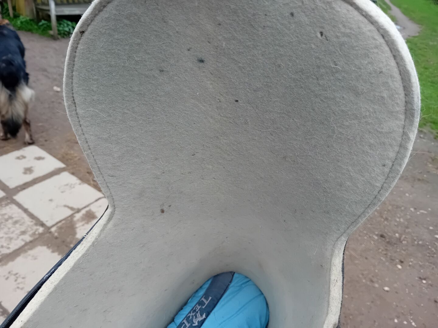 Sitzkissen, Reitkissen, baumlos, sehr gut erhalten, Leder, Unterseite Filz. Gesamtlänge 45 cm. Ohne Zubehör Abzuholen oder anzuschauen in 53757 Sankt Augustin Versand möglich