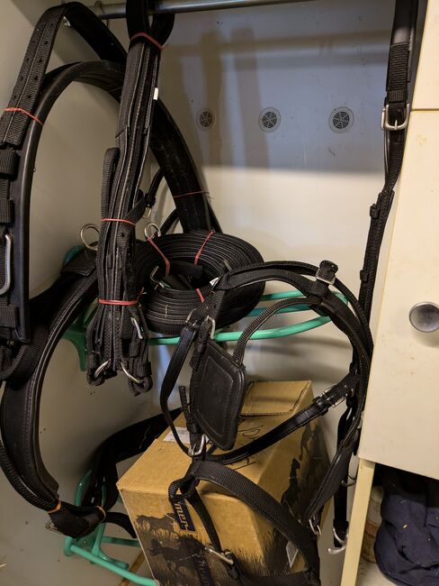 Verkaufe ein noch nie benutztes neues Ponykutschgeschirr aus Synthetik-/Kunststoffmaterial. Wollte vor 2 Jahren noch Kutsche fahren und hatte es hierfür gekauft. Jedoch musste ich leider das Pony hierfür doch in Rente schicken. Daher ist es jetzt über. Es wird nichts ausgepackt oder vermessen! Müsste für Stk 1,30-1,40 +- passen. Preis 230€ Festpreis plus Versand 14€