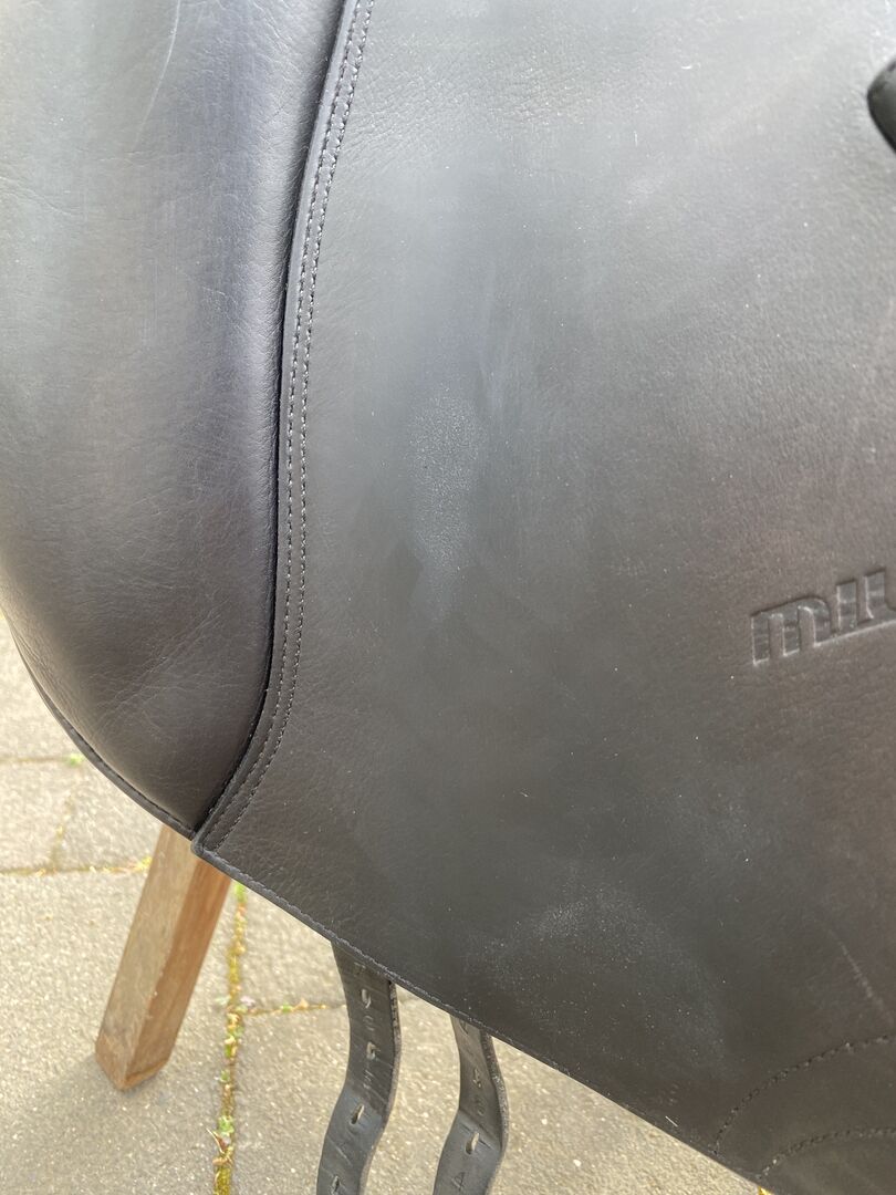 Der Sattel ist ein Exklusivmodel von Prestige und bietet mit seiner schmale Taillierung und dem tiefen Sitz einen super Sitzkomfort. Leider passt er, obwohl er sich natürlich verändern lässt, Stute überhaupt nicht.