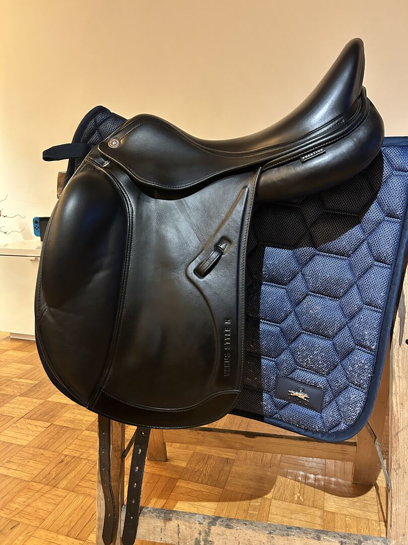 Dressursattel trennen, da er meinem Pferd einfach nicht richtig gefallen mag. Ich habe den Prestige Venus Style K im April 2024 neu bei einem Prestige Händler gekauft und auch ausschließlich von diesem regelmäßig prüfen und anpassen lassen. Der Sattel wurde zuletzt im Januar vom Sattler komplett geprüft (inklusive Sattelbaum). Auf den Sattel besteht Seitens Prestige noch Garantie. Garantiekarte vorhanden.