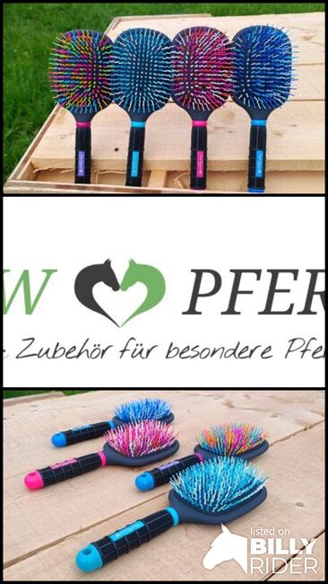 Die Bürste hat ein sehr schönes Design, liegt optimal in der Hand und vermindert durch die gewellten Kunststoff-Kopfnadeln den Haarverlust, besonders geeignet für gewelltes Pferdehaar, damit das Haar des Pferdes geschmeidig bleibt und nicht seinen Glanz verliert.
