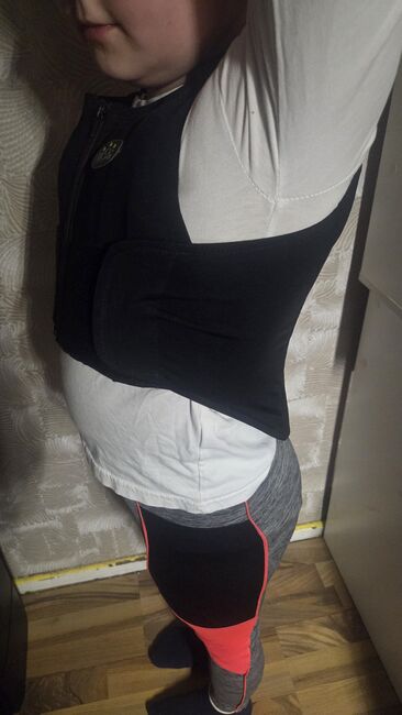 Verkauft wird der Protektor in Größe 4xs meine Tochter war damit immer sicher auf ihrem Pony ! Flexibel und nicht wie ein panzer.