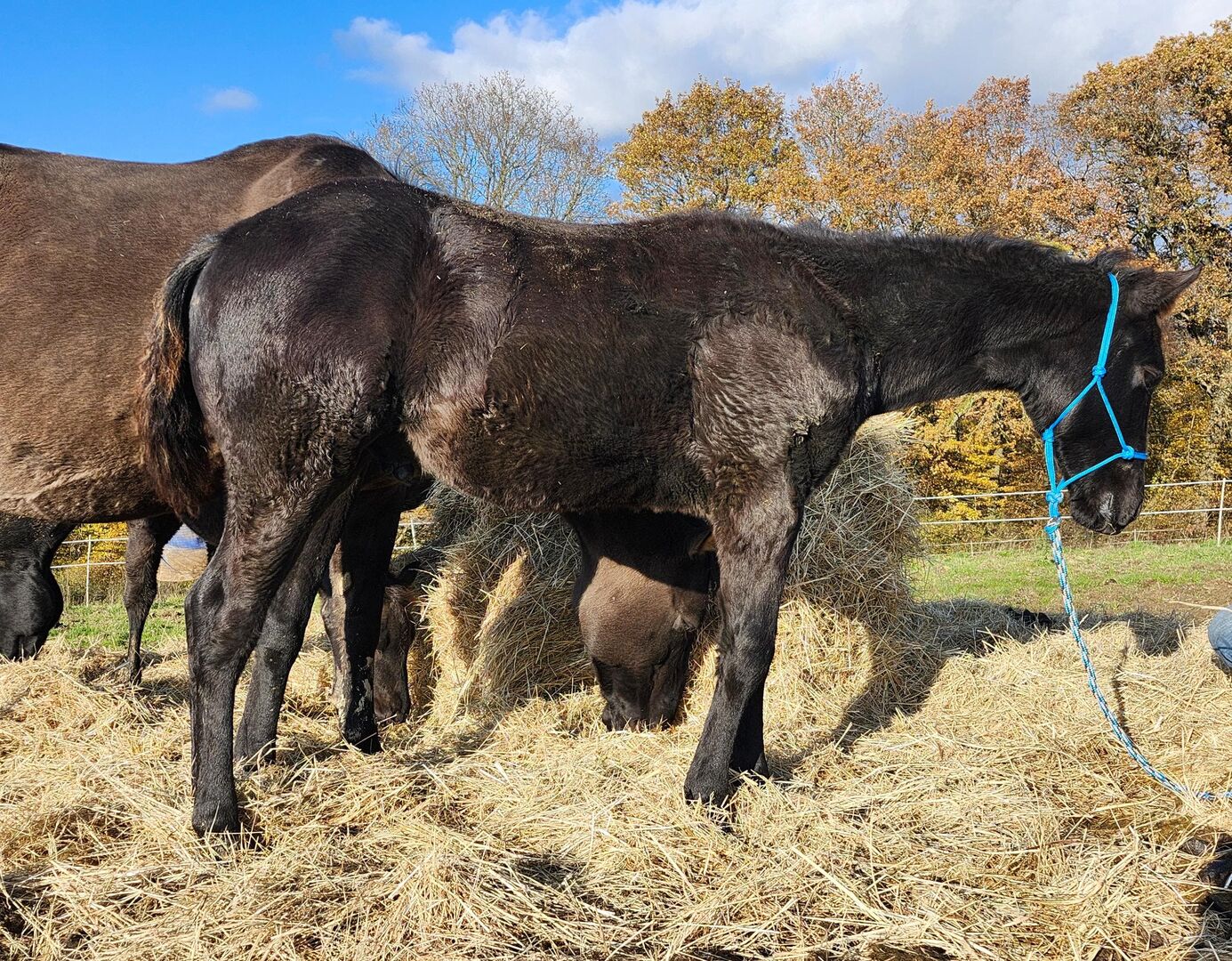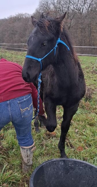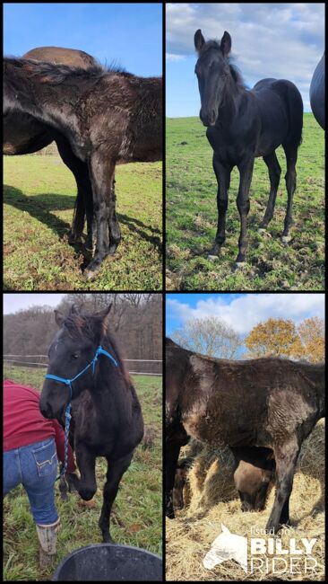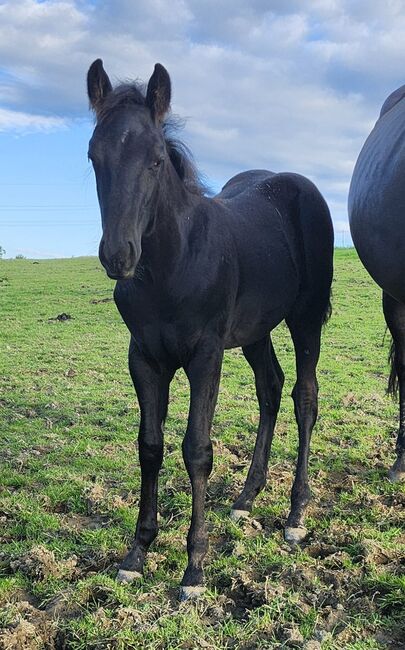 Drifts To The Future ist ein bildhübscher American Quarter Horse Hengstjährling, geboren am 05.06.2025. Er ist schwarz (black) mit nur wenigen Stichelhaaren an der Stirn und genetisch homozygot black sowie homozygot agouti. Die AQHA-Papiere sind beantragt, das zu erwartende Endmaß liegt bei ca. 162 cm. Der junge Hengst überzeugt durch ein korrektes Gebäude, eine sehr gute Entwicklung, ausgewogene Bemuskelung und starke Knochen. Midnight wird später auch größere Reiter problemlos abdecken können. Seine Grundgangarten sind gut und taktsicher, er lernt schnell und bringt ein ausgeglichenes, angenehmes Temperament mit. Charakterlich ist Midnight ein echtes Goldstück. Er ist sehr menschenbezogen, stets freundlich, ruhig und gelassen und meist der Erste, der einen am Weidetor begrüßt. Er möchte gefallen, ist sehr brav im Umgang und zeigt sich jederzeit kooperativ. Er wächst im Herdenverband auf, kennt das Fohlen-1x1, ist halfterführig und kennt sowohl Tierarzt als auch Hufschmied. Er ist gesund, regelmäßig entwurmt und 6-Panel n/n getestet. Abstammungsmäßig ist er etwas ganz Besonderes: Er ist der einzige Sohn von Drifts Chip in Europa und stammt aus der berühmten 6666 Ranch-Blutlinie, die weltweit für Vielseitigkeit, Leistungsbereitschaft und Rittigkeit bekannt ist. Damit ist er nicht nur für Freizeit und Turniersport, sondern auch für die Zucht hochinteressant. Ob als zukünftiges Showpferd, Sportpartner oder zuverlässiger Freizeitbegleiter - mit seinem Potenzial für verschiedene Disziplinen und seinem außergewöhnlich lieben Charakter ist Drifts To The Future ein echtes Versprechen für die Zukunft.