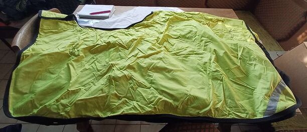 Verkaufe reflektierende Ausreitdecke, Innenfutter aus Fleece, winddicht und wasserabweisend, mit Schweifkordel und doppeltem Klettverschluss vorne. Passend bei Deckengröße 115 bis 125