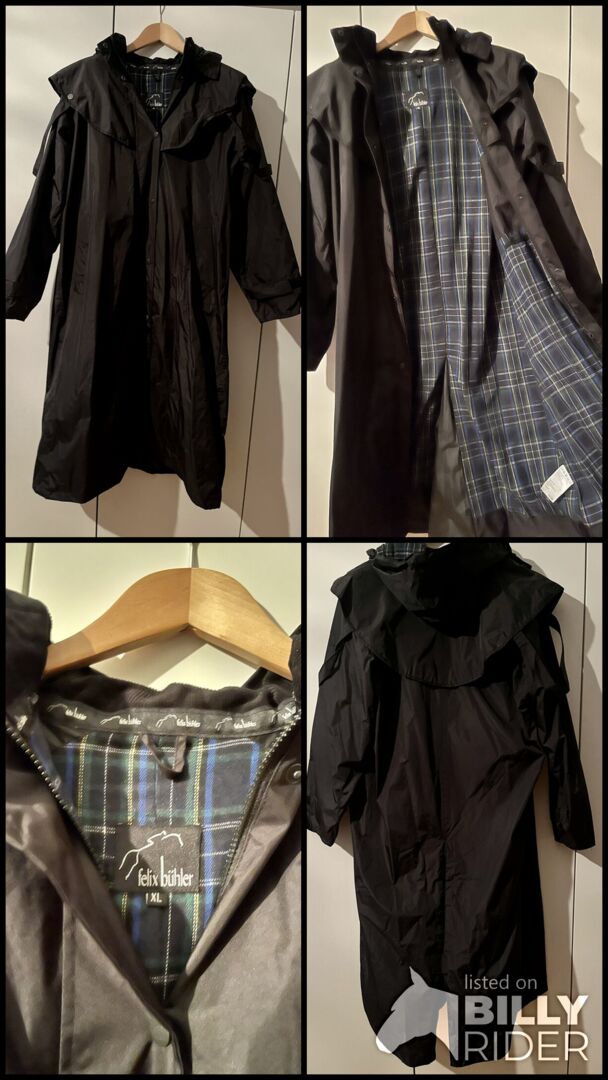 Langer Regenmantel in schwarz von Felix Bühler in XL, mit verschließbarem Reitschlitz hinten. Nur einmal getragen und absolut neuwertig. Neupreis: 69,90€ Versand: Hermes Paket 5,40€
