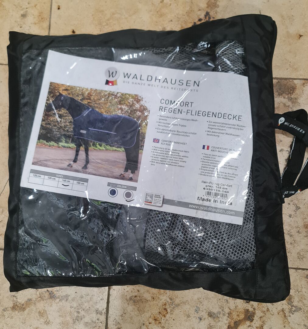 Verkaufe ungenutzte Regen-Fliegendecke der Firma ELT bzw. Waldhausen. Rückenlänge 145cm in grau! Die Decke ist richtig schön aber ich brauche sie nicht. Der Rückenbereich besteht aus wasserdichten Material und die Seiten aus Mesh.