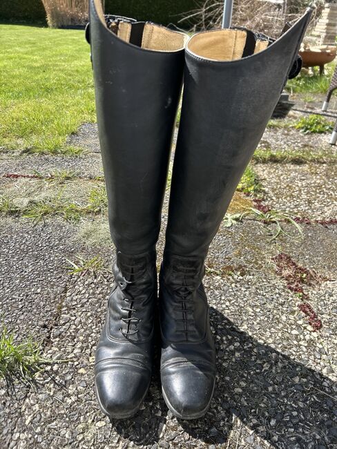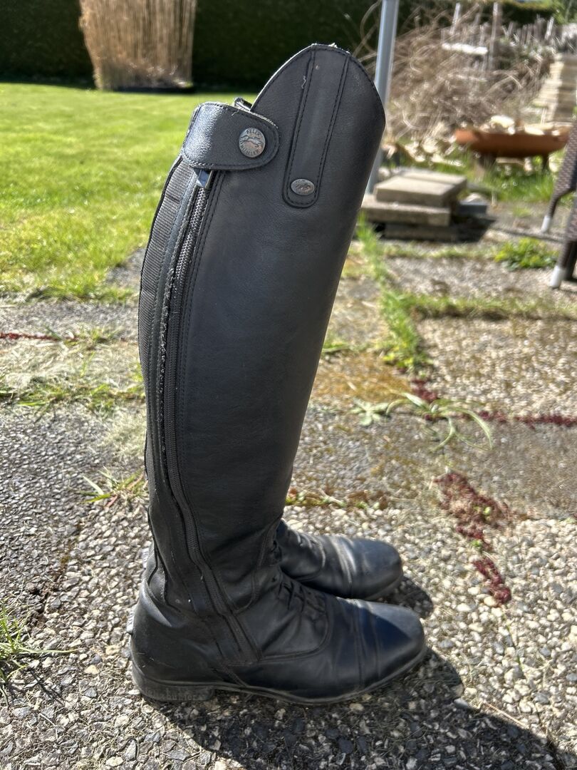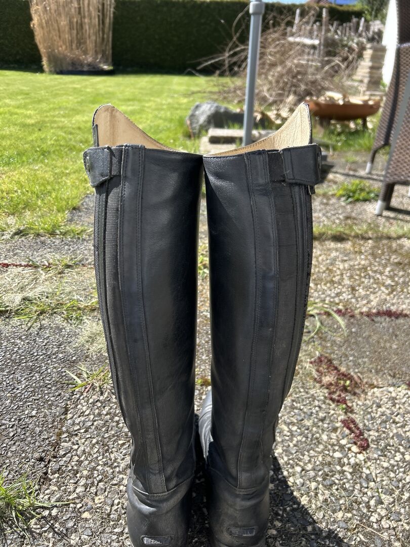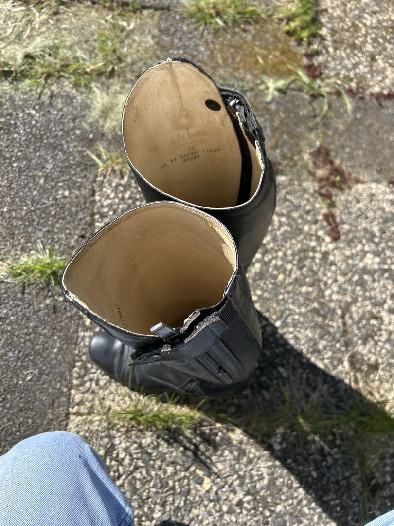 Felix Bühler Reitstiefel. Sie wurden gut gepflegt und geschont mit Stiefel Spannern. Sie wurden regelmäßig mit Lederpflege eingecremt. Es sind natürlich Gebrauchsspuren vorhanden, halten sich jedoch in Grenzen:). Da ich mit dem Reiten aufgehört habe, würde ich Sie gerne abgeben, da sie zum stehen zu schade sind. Neupreis bei 300€. Sie sind seit 5 Jahren in meinem Besitz.