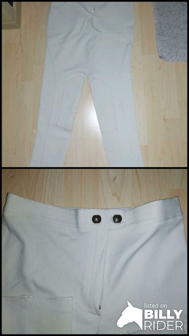 Verkaufe hier eine Creme/beige Farben dünnere Reithose. Naht wurde unten aufgetrennt, am Bund kleine Flecken, Größe 28“ 71cm. Bei Fragen gerne schreiben. Versand nach Absprache