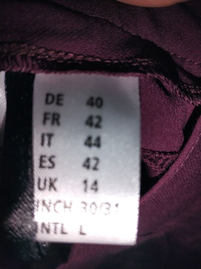 , Größe 38 und 40, Farbe schwarz und lila.