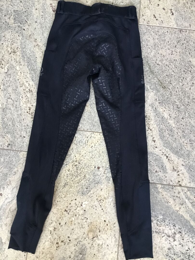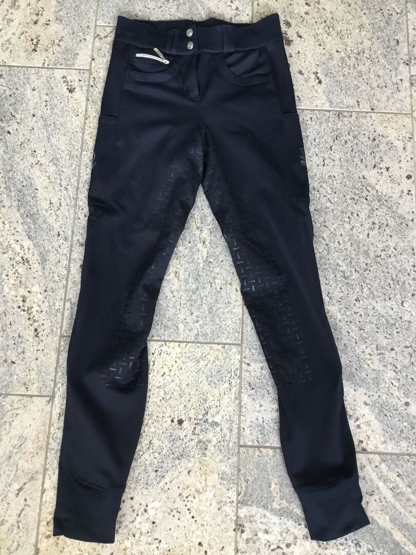 Gebe diese sehr wenig benutzte Reitlegging mit Silikonbesatz und eleastischem Beinabschluss ab. Die Hose hat 2 Handytaschen und ein hohes Bündchen