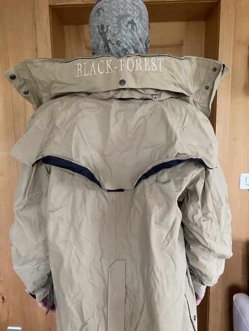 Langer und warmer Reitmantel Black Forest in Topzustand (wurde nie getragen). Der Mantel ist warm, robust und bietet dank seiner Länge optimalen Schutz. Langer Schnitt, seitlich und hinten Reitschlitze zum öffnen, mit Druckknöpfen. Vorne, Reissverschluss und Druckknöpfe. Grosse Kapuze als Regenschutz. Der Mantel ist innen dunkel gefüttert, hat verschiedene Innentaschen und zwei grosse Aussentaschen.Reflektierende Streifen sorgen für Sichtbarkeit! Innenschlaufen mit Klettverschluss für die Beine. Sehr gut geeignet für Ausritte bei Wind und Regen oder ideal für kalte Tage im Stall oder bei Outdoor Arbeiten.Langer und warmer Reitmantel Black Forest in Topzustand (wurde nie getragen). Der Mantel ist warm, robust und bietet dank seiner Länge optimalen Schutz. Langer Schnitt, seitlich und hinten Reitschlitze zum öffnen, mit Druckknöpfen. Vorne, Reissverschluss und Druckknöpfe. Grosse Kapuze als Regenschutz. Der Mantel ist innen dunkel gefüttert, hat verschiedene Innentaschen und zwei grosse Aussentaschen.Reflektierende Streifen sorgen für Sichtbarkeit! Innenschlaufen mit Klettverschluss für die Beine. Sehr gut geeignet für Ausritte bei Wind und Regen oder ideal für kalte Tage im Stall oder bei Outdoor Arbeiten. Neupreis aktuell bei Loesdau 169,99