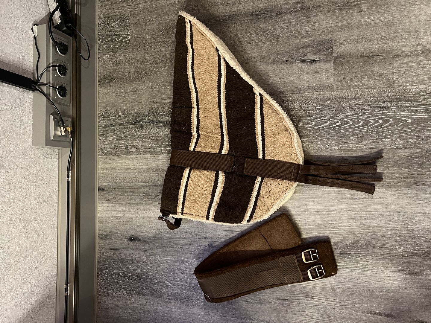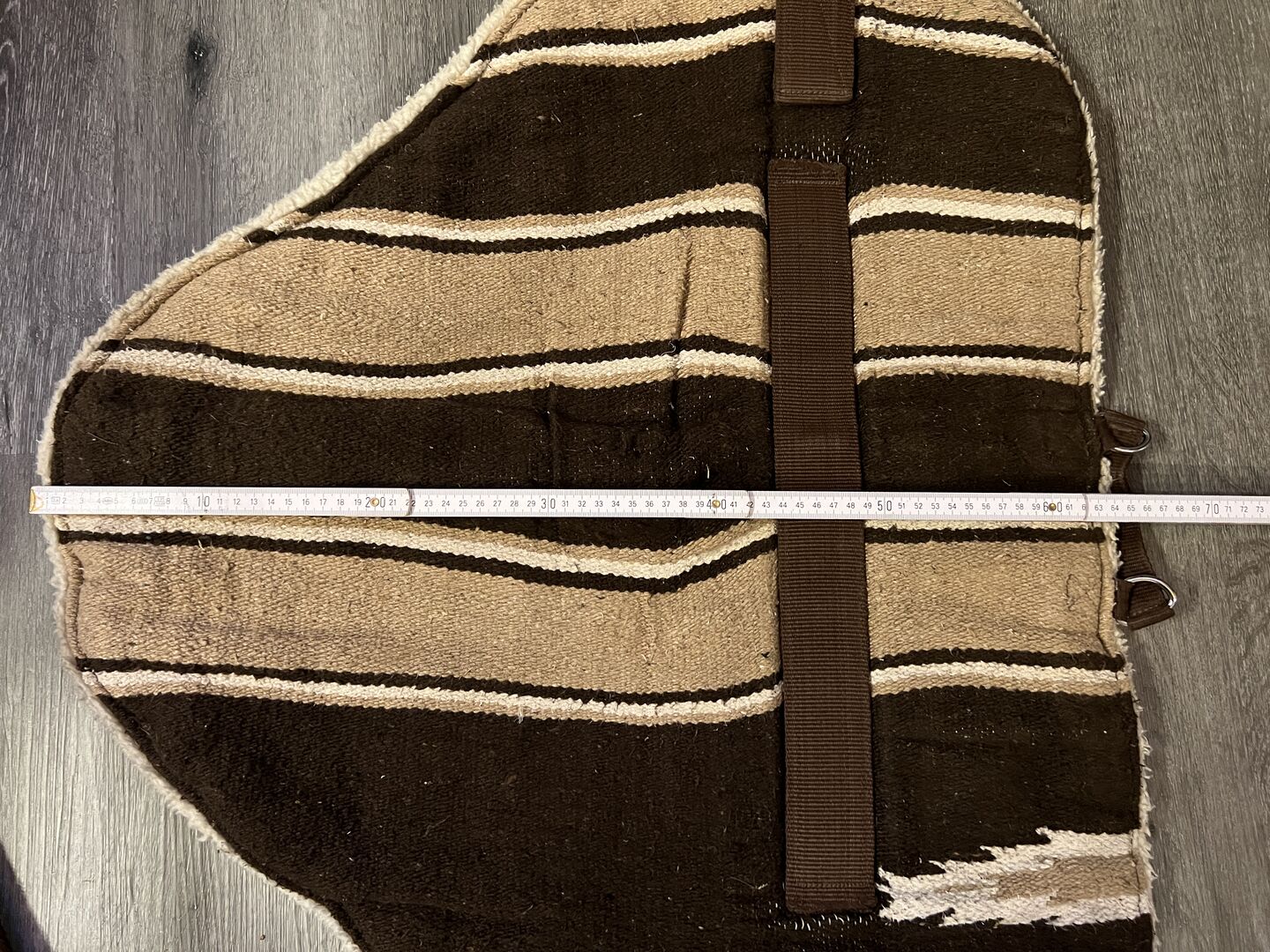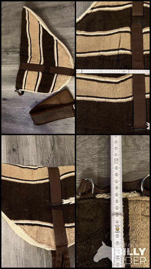 Reitpad mit farblich passendem Sattelgurt. Das Pad habe ich selbst hierüber gebraucht erworben, allerdings nur 3x genutzt. Daher darf das Pad gerne ausziehen und jemand anderen eine Freude bereiten. Zur Größe kann ich nur sagen, dass es auf Grosspferde passt, die Sitzfläche hat eine Länge von 65cm. Der Gurt ist ebenso gebraucht, siehe Bilder. Dieser hat eine Länge von 74cm von Schnalle zu Schnalle.